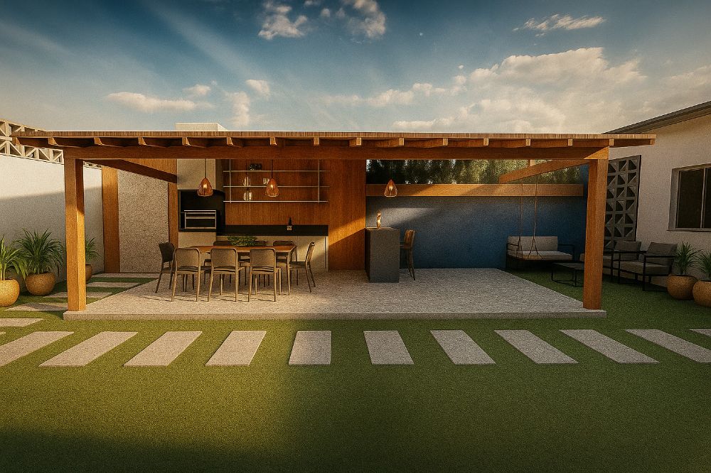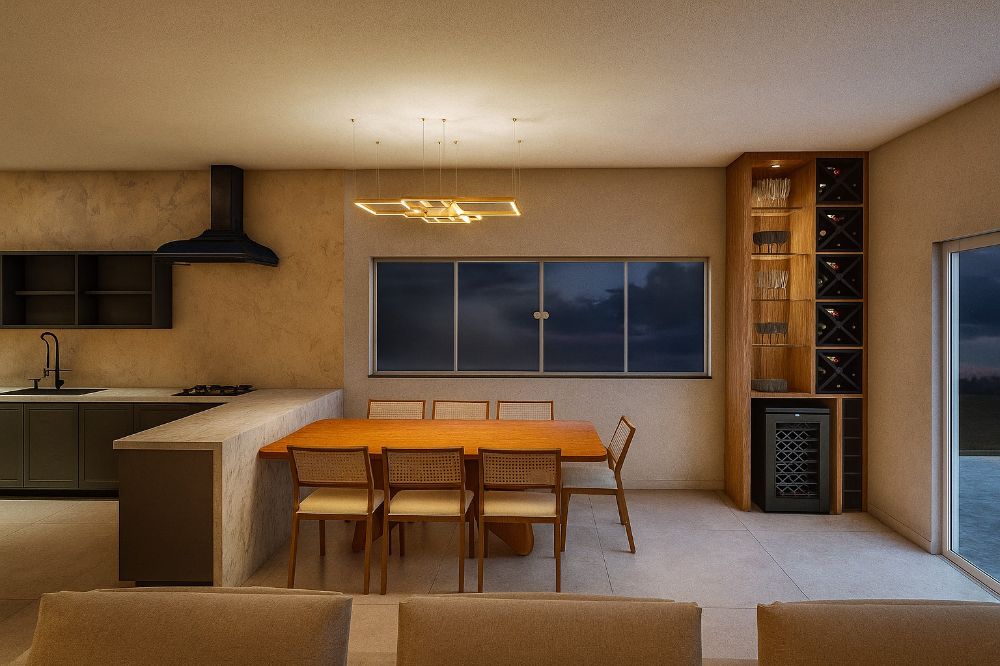 Este projeto de arquitetura e design de interiores foi integralmente concebido com o objetivo principal de criar um lar que seja o palco perfeito para a socialização e o convívio, atendendo ao desejo da cliente de receber amigos com frequência e celebrar a vida em grande estilo. O escopo abrangeu a otimização e a redefinição completa das áreas social, gourmet e íntima da residência. A prioridade máxima foi criar múltiplos ambientes que convidassem à permanência, fosse durante grandes celebrações ou em momentos de descanso e intimidade. A área externa, em particular, foi drasticamente transformada para acolher o alto fluxo de convidados, com a criação de uma ampla Área Gourmet e um espaço de lazer diferenciado. O resultado é um lar que equilibra o dinamismo da vida social com o aconchego do recanto particular. Cada detalhe, desde a flexível Sala de Estar e a Cozinha expandida até os ambientes íntimos personalizados, foi pensado para maximizar o conforto, a funcionalidade e, acima de tudo, a personalidade dos moradores.